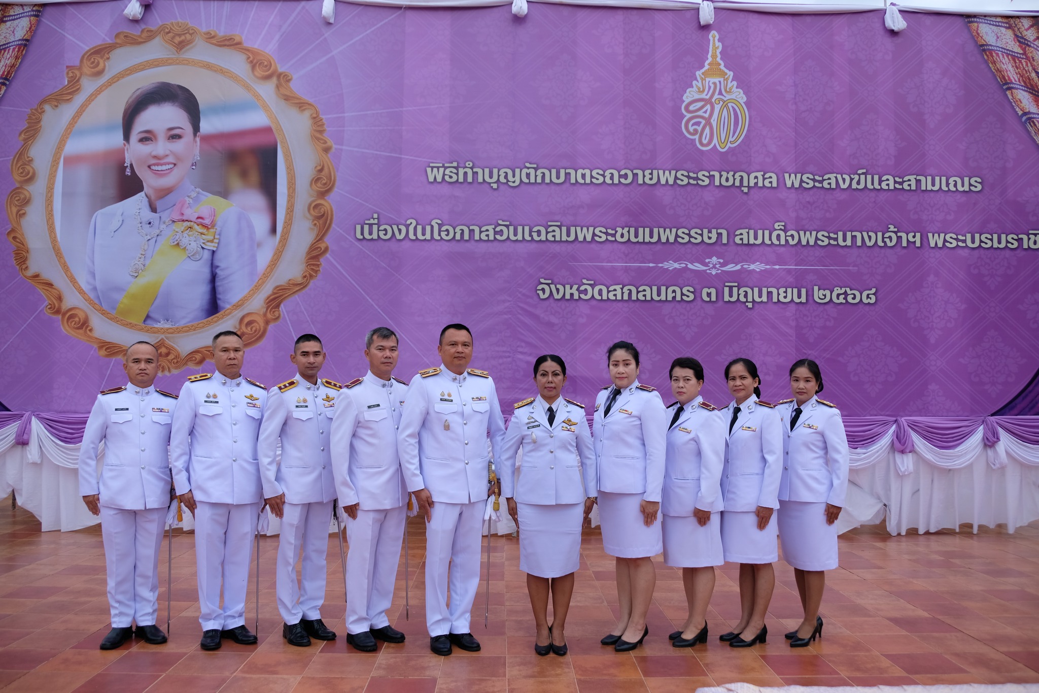 ► 3 มิถุนายน 2568 เวลา 06.00 น. พ.ต.อ.หญิง มณัฎฐ์ชนก มหาชนะวงศ์ นวท.(สบ 4) ฯ นำข้าราชการตำรวจในสังกัด เข้าร่วมกิจกรรมเฉลิมพระเกียรติ สมเด็จพระนางเจ้าฯ พระบรมราชินี เนื่องในโอกาสวันเฉลิมพระชนมพรรษา 3 มิถุนายน 2568 ในพิธีทำบุญตักบาตรถวายถวายเป็นพระราชกุศล ณ วัดพระธาตุเชิงชุมวรวิหาร อ.เมือง จ.สกลนคร และในเวลา 09.00 น. เข้าร่วมกิจกรรมจิตอาสา โดยมีผู้ว่าราชการ จ.สกลนคร เป็นประธานในพิธี ณ โรงเรียนบ้านนาดอกไม้ ต.ฮางโฮง อ.เมือง จ.สกลนคร |