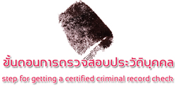 การตรวจสอบประวัติบุคคลทั่วไปสามารถยื่นคำร้องด้วยตนเอง โดยกรอกข้อมูลผ่านเว็ปไซต์ กองทะเบียนประวัติอาชญากร WWW.CRD-CHECK.COM |